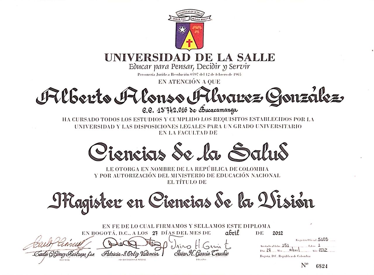 Soy optómetra con una formación sólida y una amplia trayectoria en el cuidado de la salud visual. Me gradué de la Universidad Santo Tomás y continué mis estudios con una maestría en Ciencias de la Visión en la Universidad de La Salle, enfocada en entrenamiento y rehabilitación visual. También cuento con una especialización en Salud Ocupacional y Riesgos Laborales, además de varios diplomados en áreas como gerencia en salud y pedagogía universitaria.