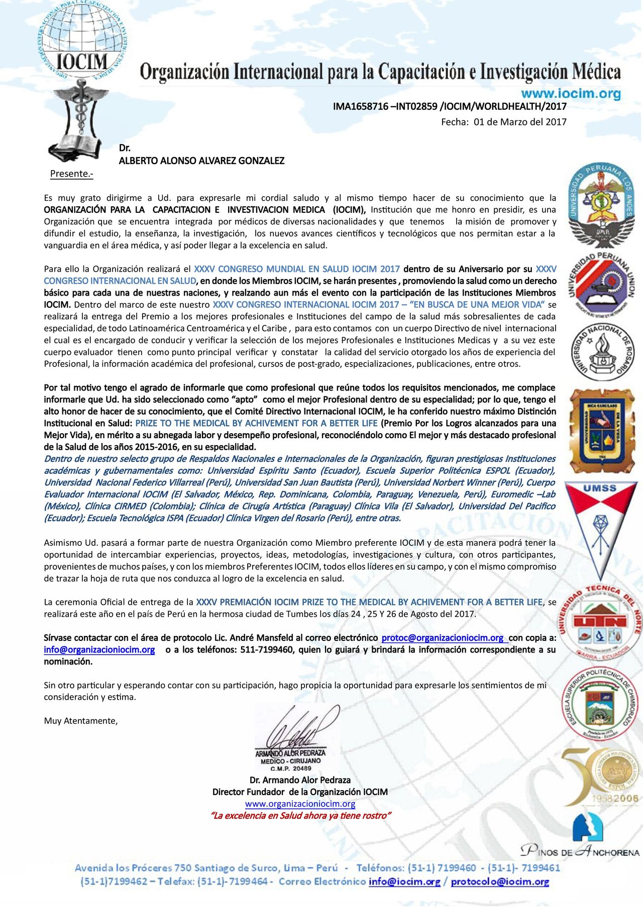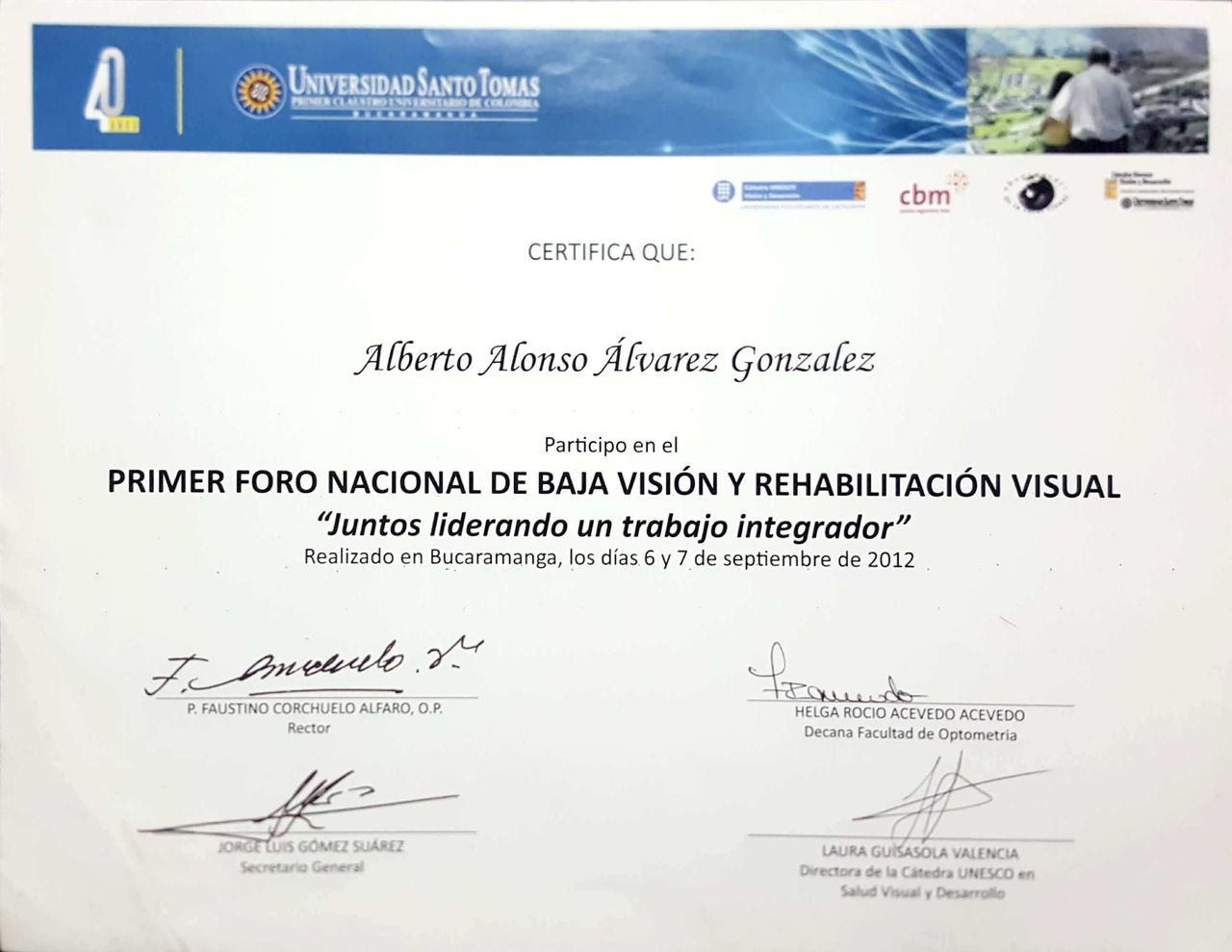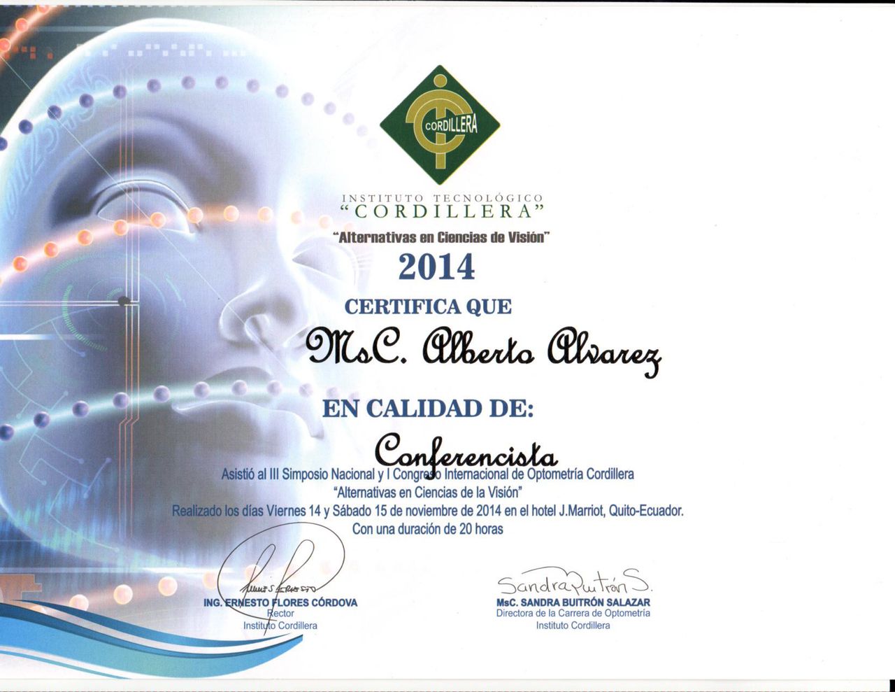 También he participado como conferencista en congresos nacionales e internacionales de optometría, donde he recibido reconocimientos por la calidad y el impacto de mis aportes. Algunos de estos eventos han sido respaldados por organizaciones como el World Council of Optometry, lo que ha fortalecido mi compromiso con el avance científico y profesional de la optometría.